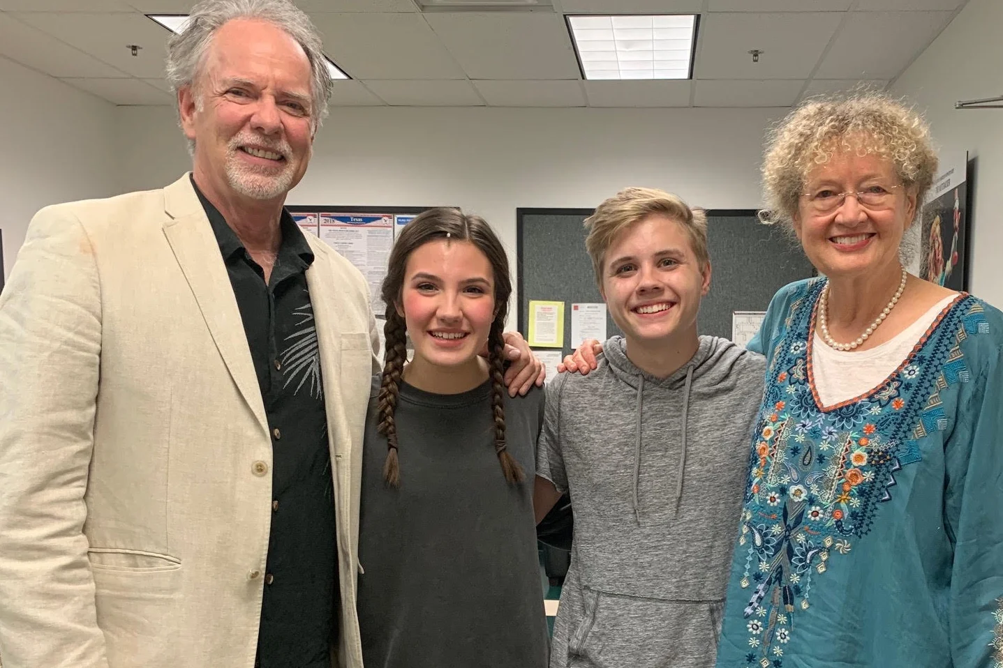 Author of the Magic Tree House series, Mary Pope Osburn and husband with Jack and Annie